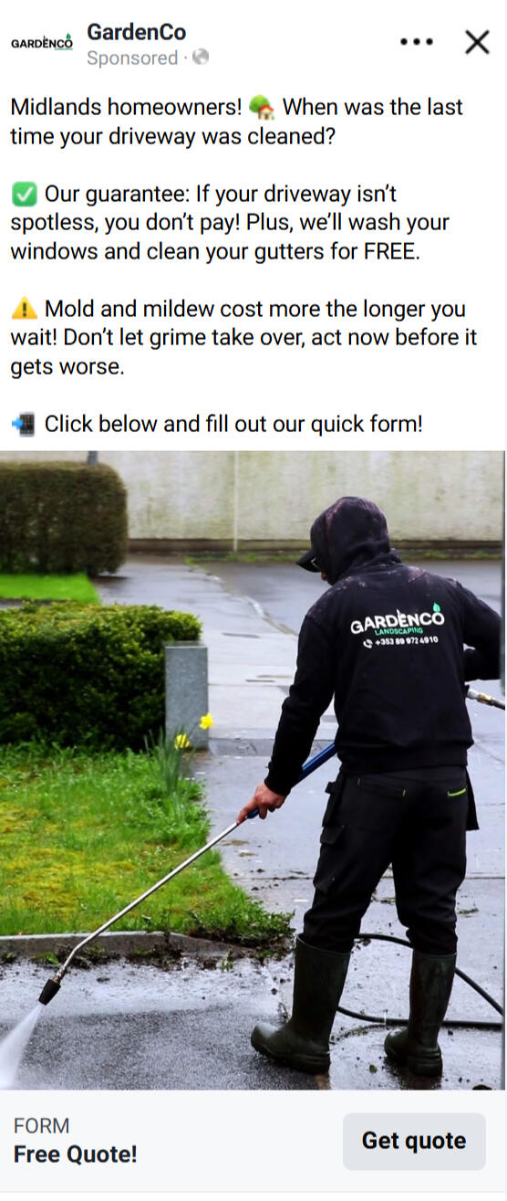 We film professional video content and run Meta and Google ads to help service businesses generate more leads and customers across Ireland.
