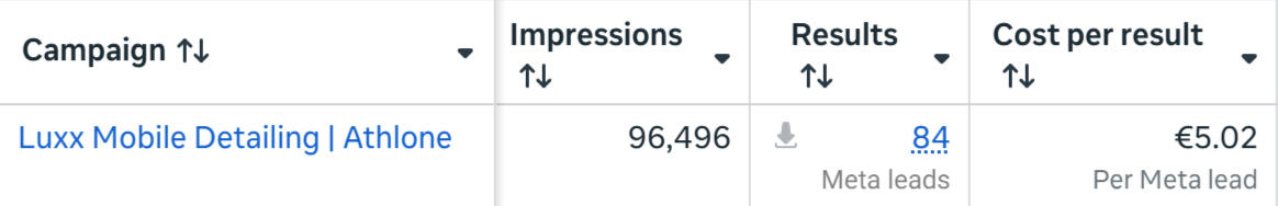 This included filming short-form video ads, running follower campaigns to build social proof, and launching Facebook and Instagram lead generation campaigns targeted to Athlone and surrounding areas.