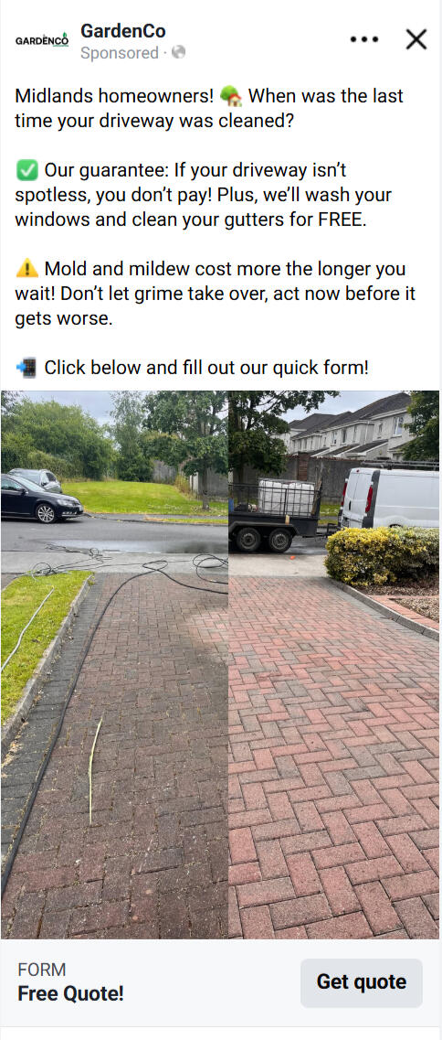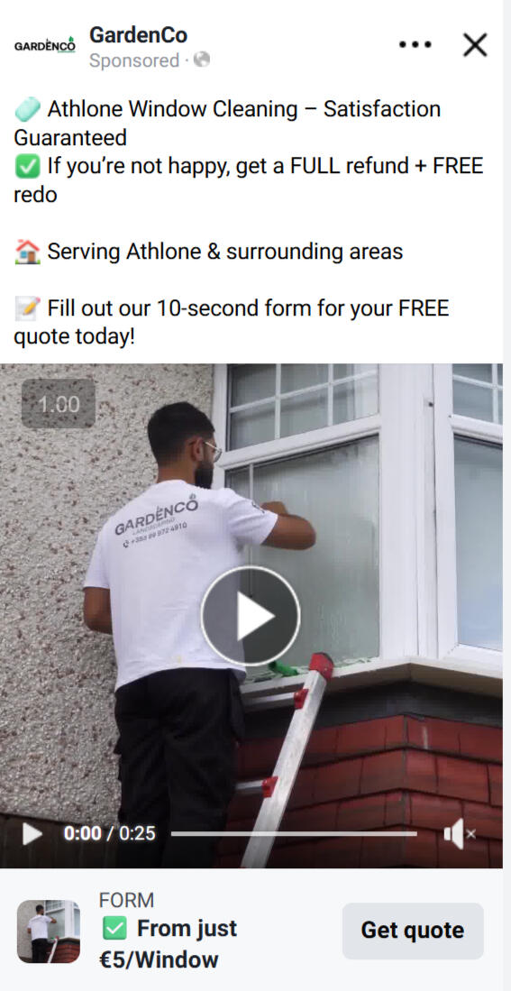 This included filming short-form video ads, running follower campaigns to build social proof, and launching Facebook and Instagram lead generation campaigns targeted to Athlone and surrounding areas.