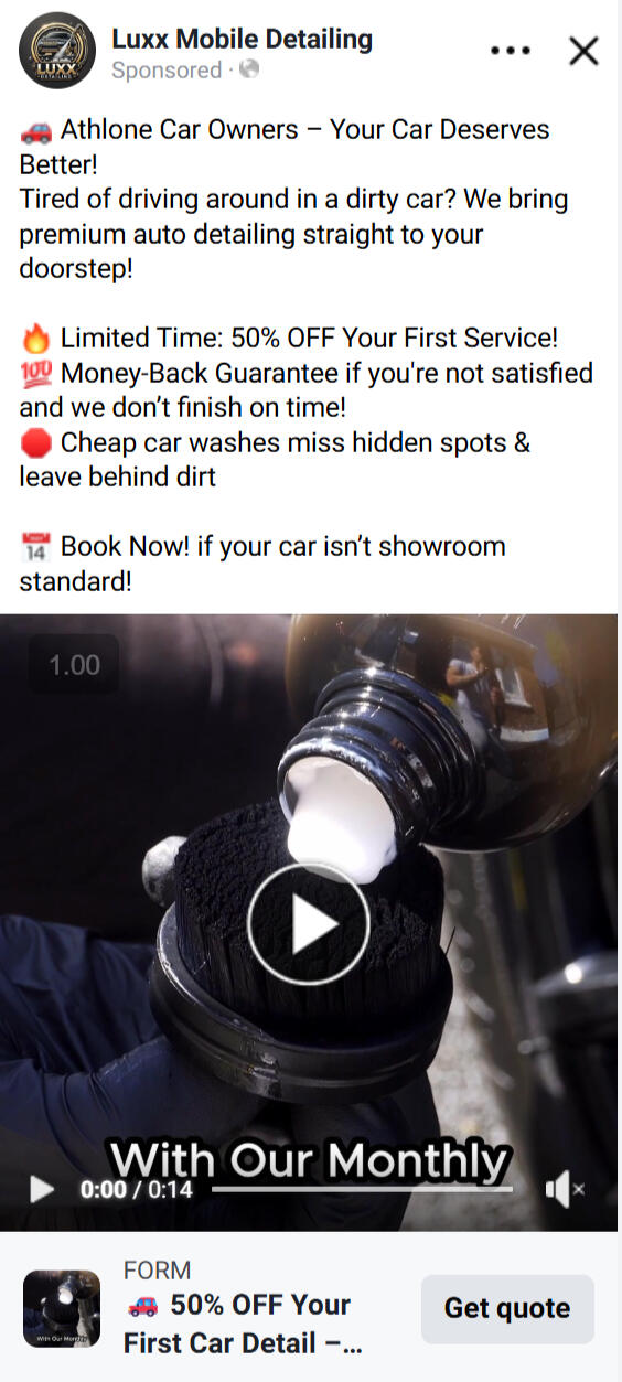Luxx Mobile Detailing was a new startup with fewer than 20 followers and limited brand trust.